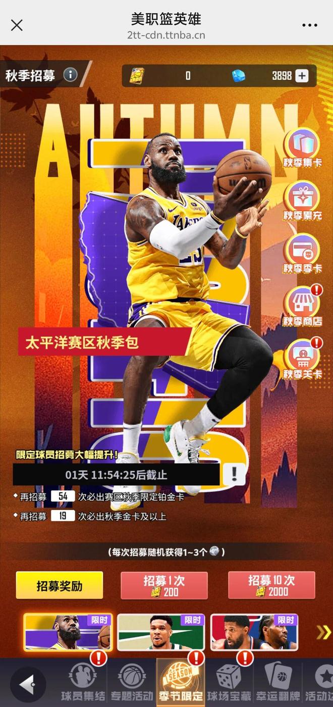 入秋时!NBA英雄2秋季包他来了!