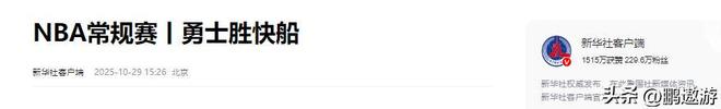 新华社客户端(NBA常规赛丨勇士胜快船2025.10.29)